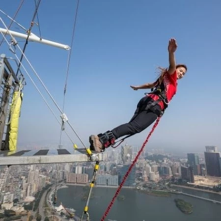 Skypark Macau Tower is the home to the Guinness World Record Highest Commercial Bungy Jump (Building). At 233 meters you can live on the edge and take the plunge or take a leisurely walk around the Skywalk platform with your friends and family. Become your favourite superhero with Skyjump or conquer the world's only urban Tower Climb and Macau’s highest summit at 338 meters.